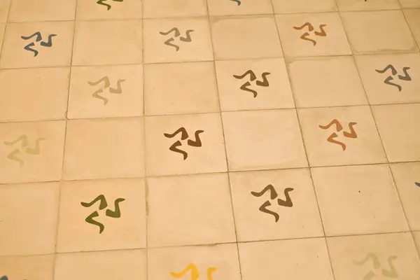 Isle of Man heeft identiek symbool op de vlag en achtergrond is rood.