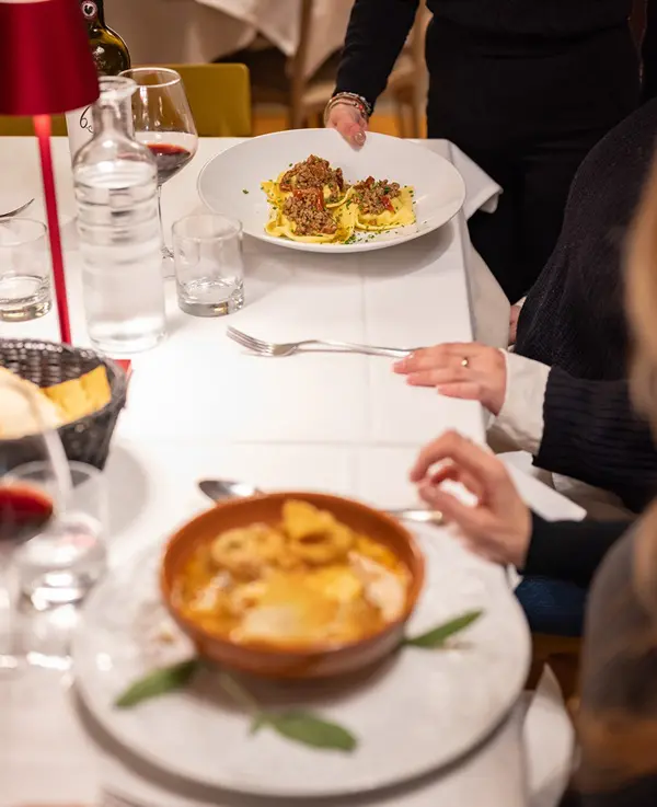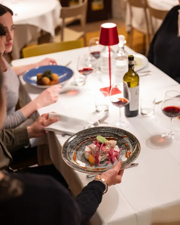 Vaak gaan de recepten en tradities van deze keuken al generaties mee. Het restaurant in de oude boerderij ademt Toscaanse charme. Het is smaakvol gerenoveerd met warme, rustieke tinten, houten balken en verfijnde details. De sfeer is ontspannen en hartelijk, alsof je aan tafel zit bij vrienden die je verwennen met pure smaken en liefde voor goed eten.