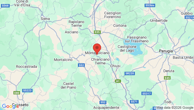 Benedetta, zoals de dame blijkt te heten, runt een agriturismo met een verbluffend uitzicht op Montepulciano. De wijnstad ligt op de heuvel achter haar huis, zeshonderd meter boven zeeniveau. De torens prikken in de blauwe lucht.
