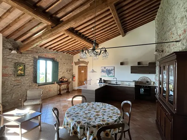 Vier appartementen, een zwembad, het vele groen en vrij uitzicht over de vallei van de Arno staan garant voor een ontspannen vakantie op het Toscaanse platteland.