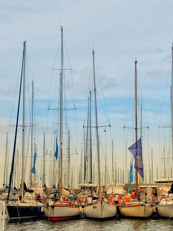 Het water van de haven weerspiegelt masten en vlaggen uit alle windstreken en in de lucht klinkt het ritmische klapperen van touwen tegen hout.