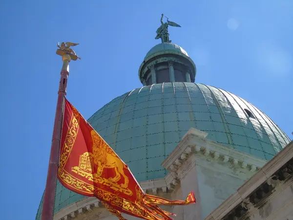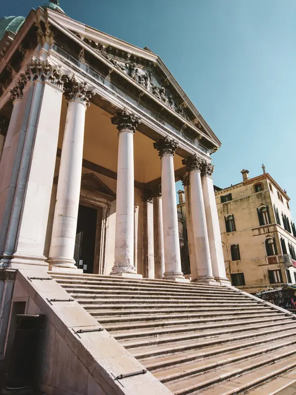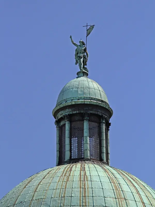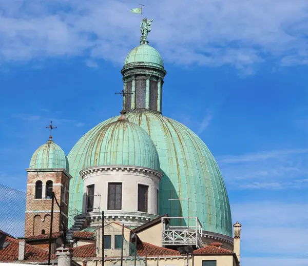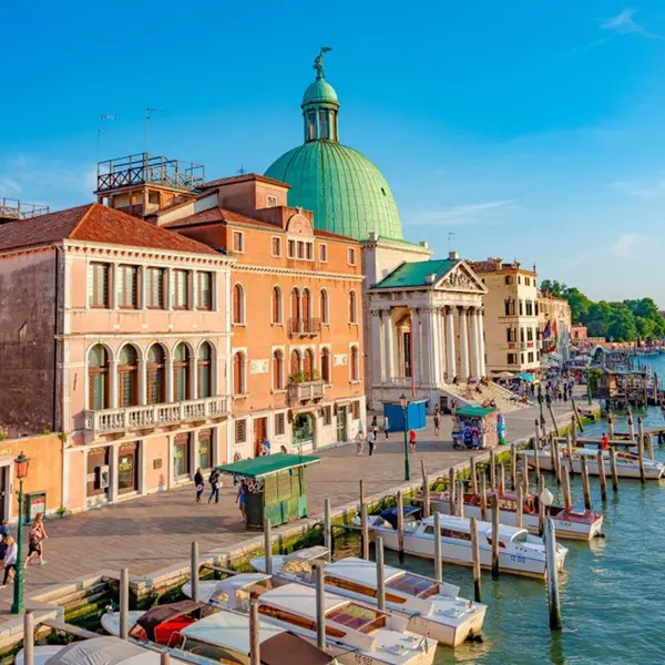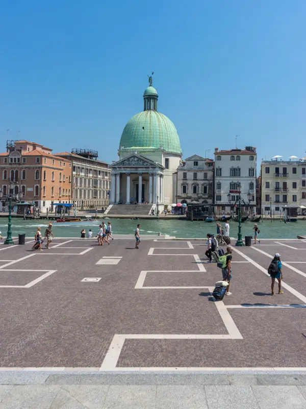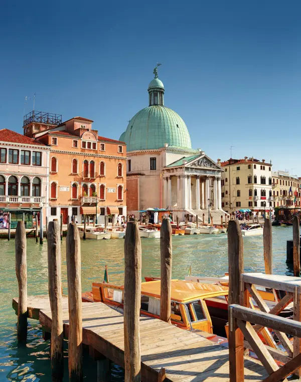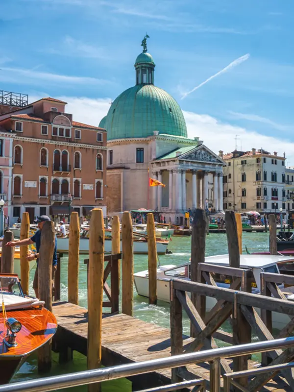Als je het station van Venetië uitkomt, zie je aan de overkant van het Canal Grande een van de opvallendste kerken van de stad: de San Simeon Piccolo, met een majestueuze koepel die dankzij de koperen bekleding vaak prachtig het zonlicht vangt.