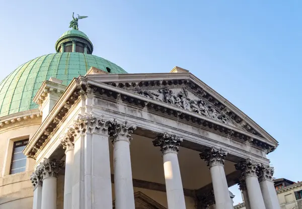 Giovanni Scalfarotto liet zich voor de bouw van deze kerk inspireren door het Pantheon in Rome en ontwerpen van Andrea Palladio.