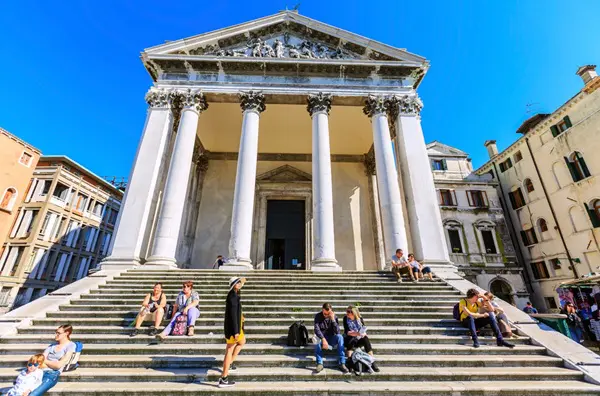 De kerk is een soort mini-les architectuurgeschiedenis, vanwege de vele voorbeelden die Giovanni Scalfarotto gebruikte: het Pantheon en de twee bijna identieke kerken op het Piazza del Popolo in Rome, de Redentore in Venetië en het tempietto, tempeltje, van Villa Barbaro in Maser, beide ontworpen door Andrea Palladio, en de Santa Maria della Salute, verderop aan het Canal Grande.