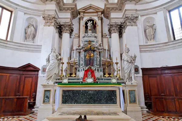 Bekijk ook zeker de neoklassieke schilderijen die de altaren in de ronde ruimte sieren, zoals De heilige Franciscus van Paola, gedragen door een engel met de heilige Cajetanus van Thiene, gemaakt door Antonio Marinetti, die ook wel Il Chiozzotto werd genoemd.