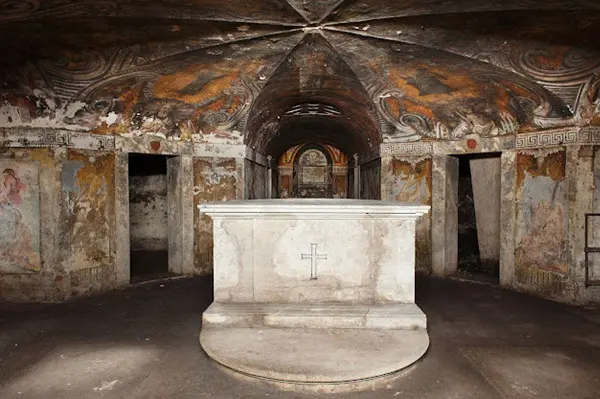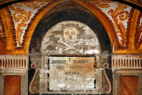 Onder de kerk huist een prachtige crypte met talrijke grafkapellen waar vooraanstaande leden van de parochie zijn begraven. De muren zijn versierd met fresco’s waarop je verhalen uit het Oude en Nieuwe Testament kunt zien. Jammer genoeg verkeren ze in slechte staat en zijn ze op dit moment niet te bezichtigen, omdat de crypte niet veilig genoeg is om de ruimte open te stellen voor bezoekers.