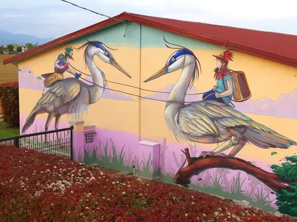 Als je nu in Vallà (provincie Treviso) aankomt, kun je je hart ophalen aan een route met verrassende street art, zowel in de straten van het dorp als langs de SP667, die dwars door Vallà loopt.