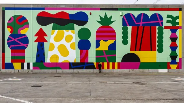 Er zijn ook wat muurschilderingen met geometrische vormen en patronen te zien, onder meer van het befaamde duo Sten & Lex en Camilla Falsini.