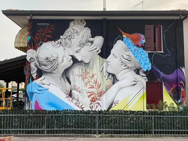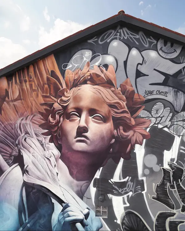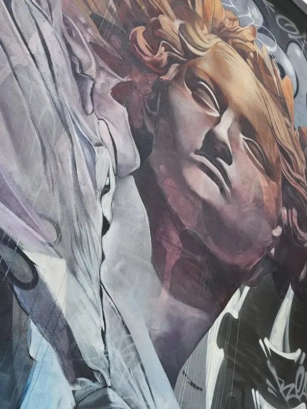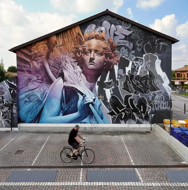 De engel is onmiskenbaar van de hand van PichiAvo, een duo straatkunstenaars uit Valencia, wereldwijd bekend en geliefd om hun onmiskenbare stijl waarin ze klassieke kunst combineren met straatkunst om een boodschap van eenheid en culturele identiteit over te brengen.