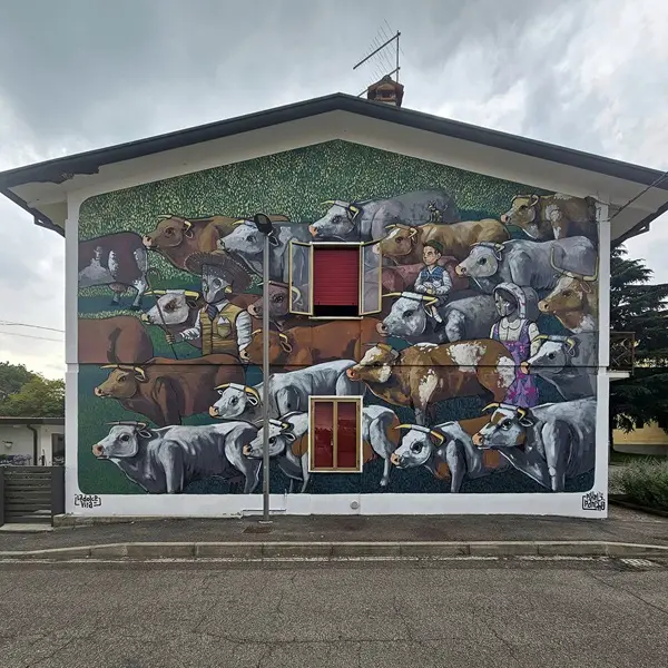 Dan zijn er nog de koeien van Pixel Pancho, de reigers van Alessandra Carloni en het meisje met schaap en konijn (met portret van Pier Paolo Pasolini) van Vera Bugatti.