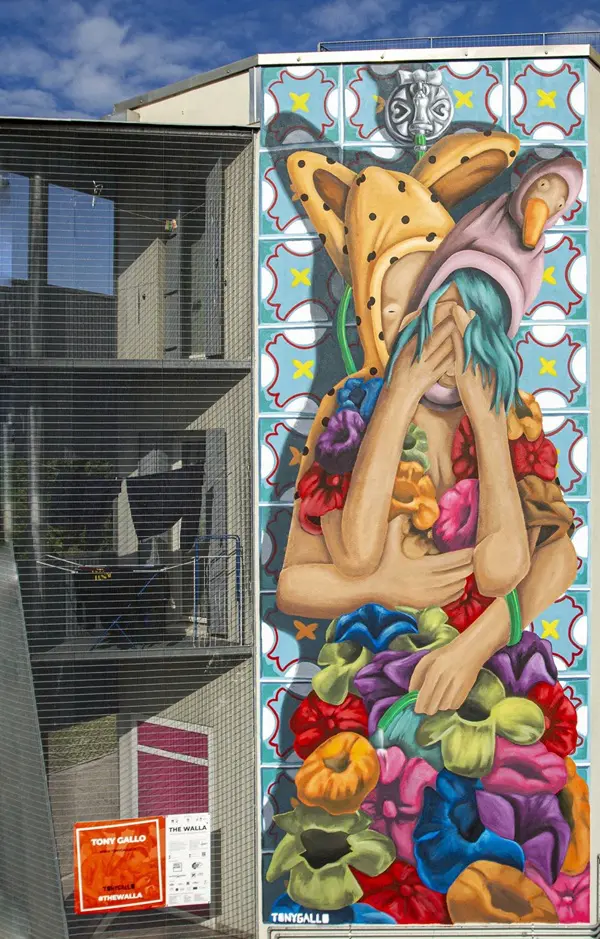 Deze street artist, wiens werk we al zagen in Padova, baseerde zijn werk voor Vallà op de zin: ‘Tutto quello che dobbiamo fare è dare acqua a ciò che teniamo, anche una goccia al giornopuò bastare per tener vicino l’amore che desideriamo.’