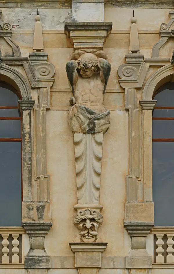 Na het auditorium neemt de gids ons mee naar de oostelijke vleugel, die samen met de westelijke vleugel tussen 1671 en 1676 in opdracht van Marco Contarini werd gebouwd. Aan de buitenzijde zijn beide vleugels versierd met talrijke beelden die uit de pilasters van de tweede verdieping steken en het gewicht van het palazzo op hun schouders lijken te dragen.