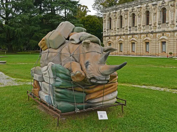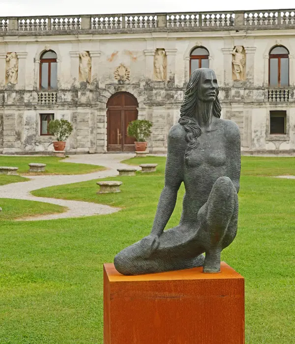 Aan de voorzijde van de villa staan verschillende kunstwerken van vooraanstaande kunstenaars zoals Stefano Bombardieri en Bruno Lucchi.’