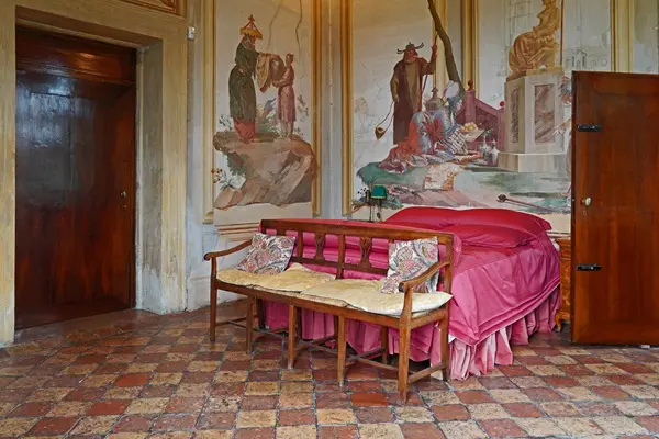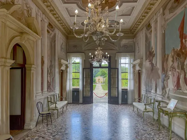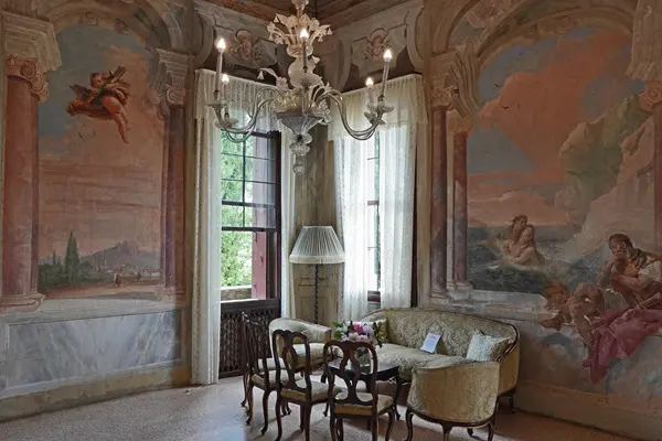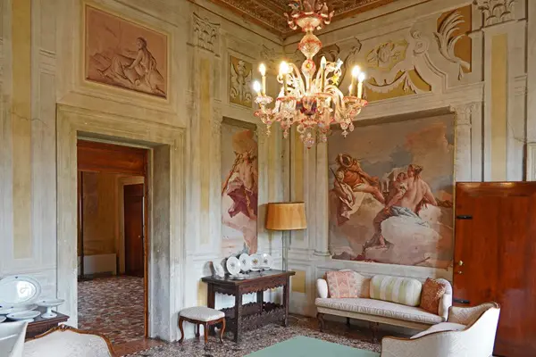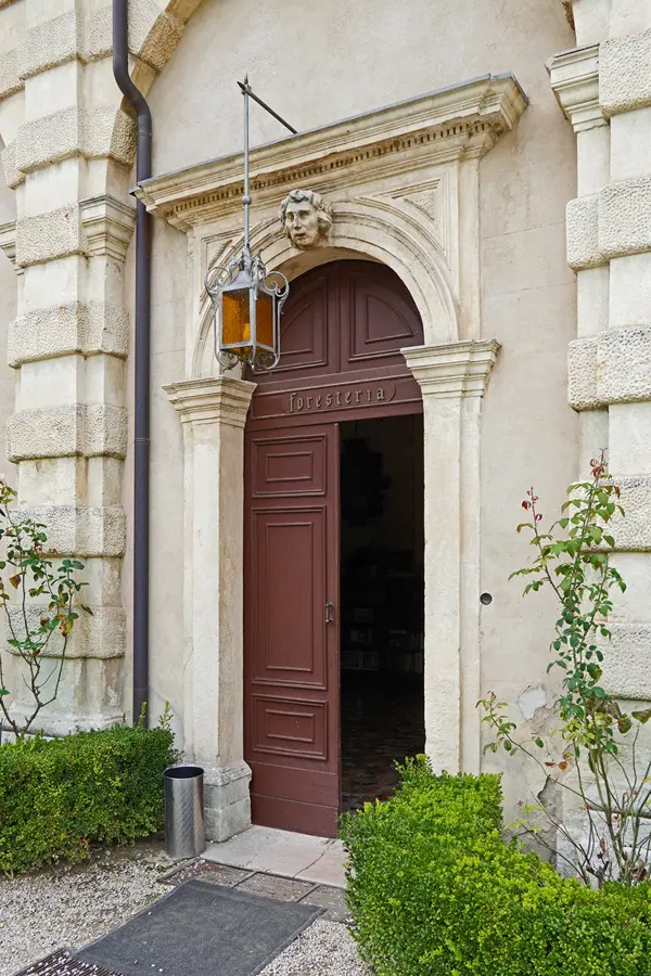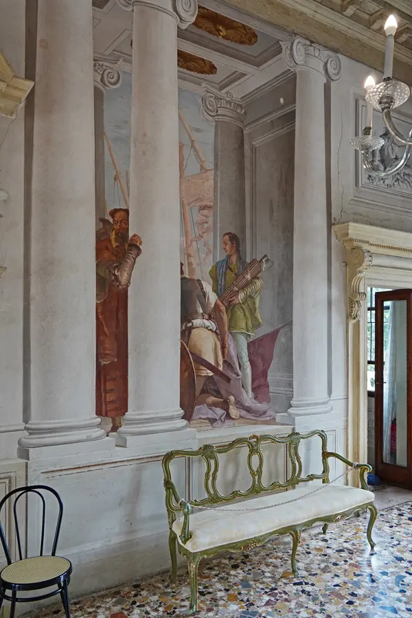 De foresteria, het gastenverblijf, is grotendeels voorzien van fresco’s van Giandomenico Tiepolo. Bij binnenkomst valt direct een portret van architect Andrea Palladio op, die een goede band had met de familie en vele gebouwen voor de Valmarana’s heeft ontworpen.