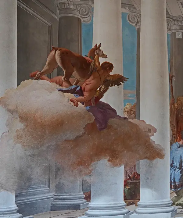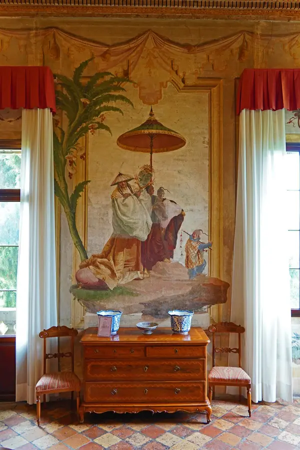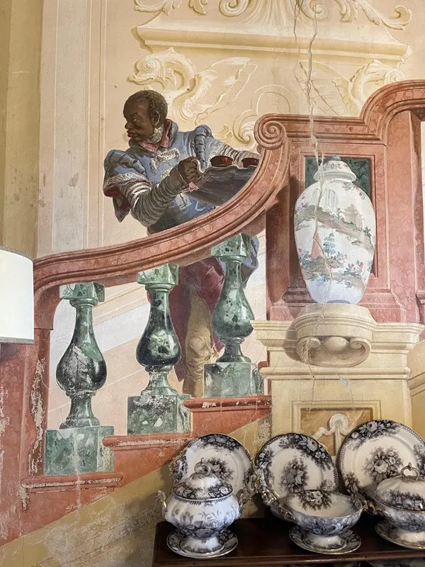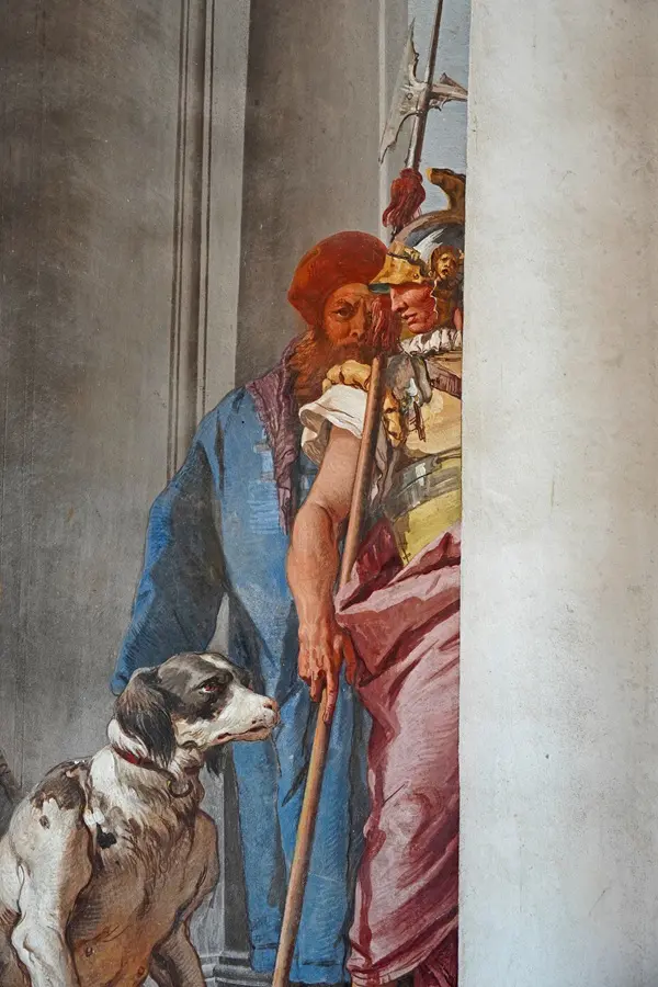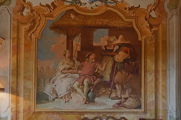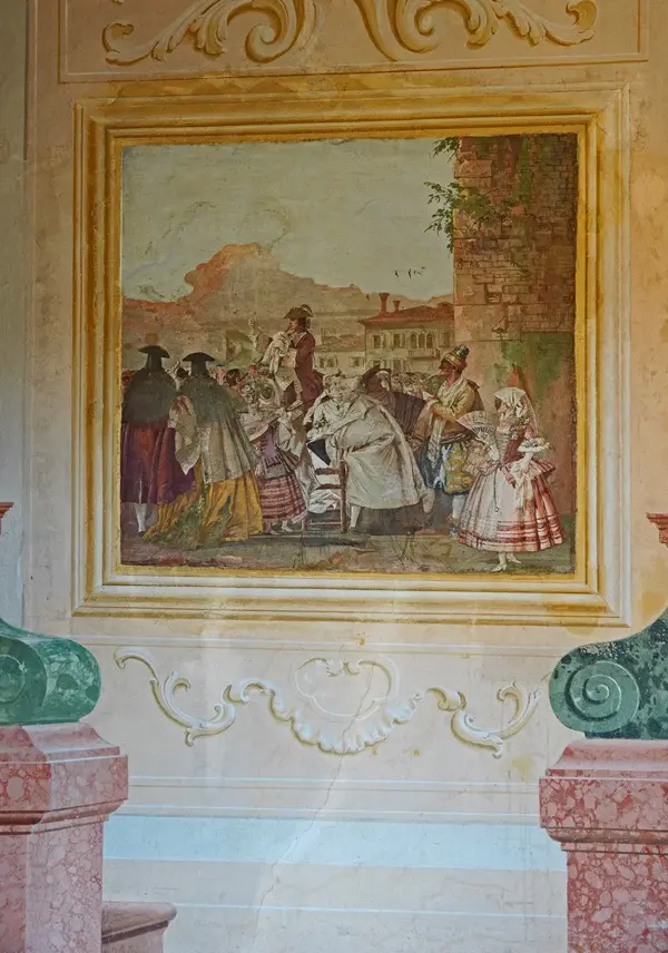 Hoewel deze kamer bijna in zijn geheel is beschilderd door Giandomenico heeft zijn vader Giambattista de figuur Ali (een Moor) in de trompe-l’oeil van zijn zoon verwerkt.