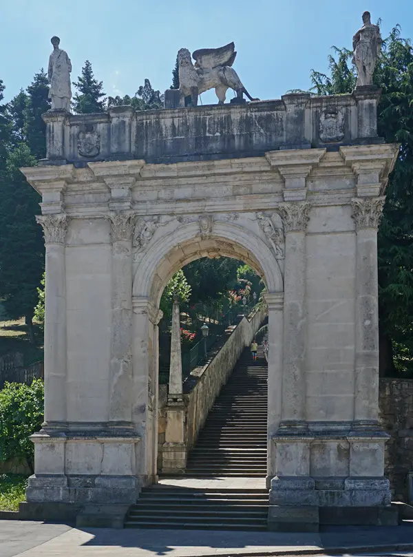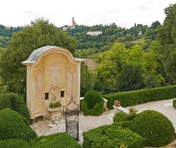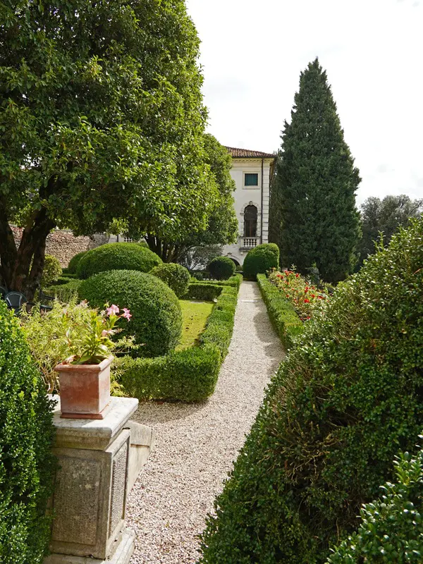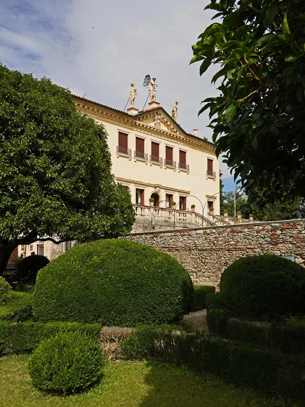 De villa is ook prima te bereiken te voet vanuit de stad Vicenza. Vanaf het Piazza dei Signori loop je in een half uur (twee kilometer) naar de ingang van de villa. Je komt dan onder meer langs de Arco delle Scalette van Palladio.