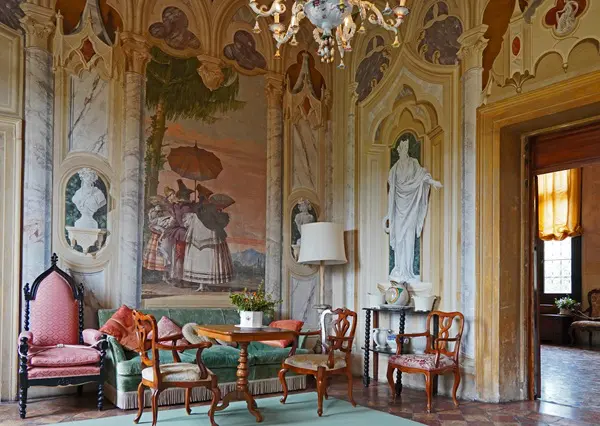 Naast de centrale zaal zijn er zeven kleinere kamers die allemaal zijn gedecoreerd in een verschillend thema, met onder meer een Chinese kamer en een kamer gewijd aan het Venetiaanse carnaval.