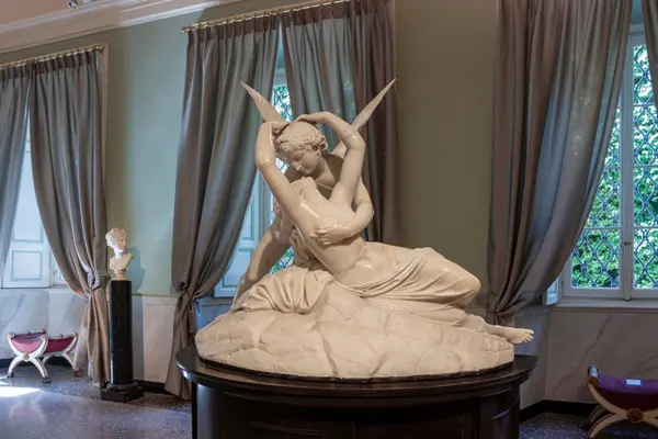 Gelukkig voor ons is de villa inmiddels eigendom van de Italiaanse staat en omgetoverd tot een museum, waar je een idee krijgt hoe de adel een buitenverblijf inrichtte. Naast stijlvolle meubels bewonder je er tal van kunstwerken, zoals Amor en Psyche van Antonio Canova (al zou het eigenlijk gemaakt zijn door Adamo Tadolini, een van zijn beste leerlingen).