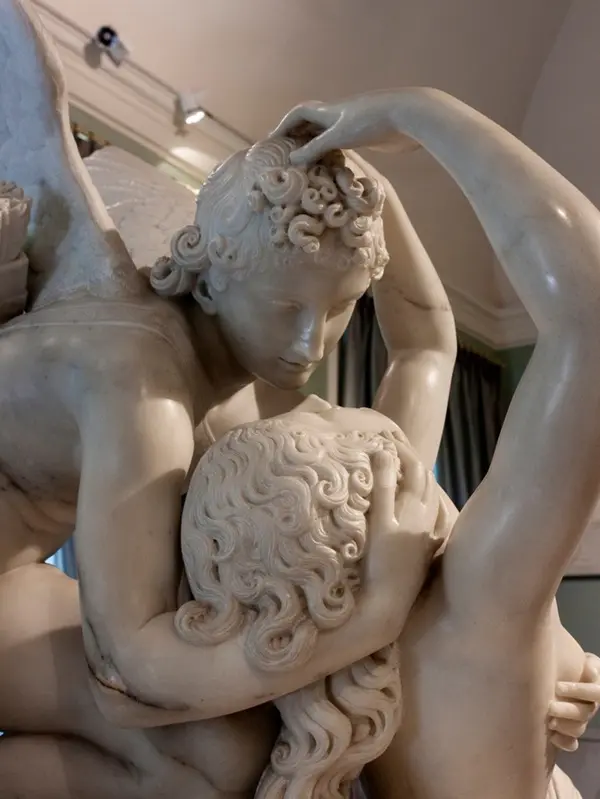 Als je de details van de twee in elkaar verstrengelde figuren bekijkt – de plooien van Psyches gewaad, haar haar, de vleugels van Amor, de bijna amberkleurige tint van hun huid – kun je nauwelijks geloven dat je naar een stuk marmer kijkt.